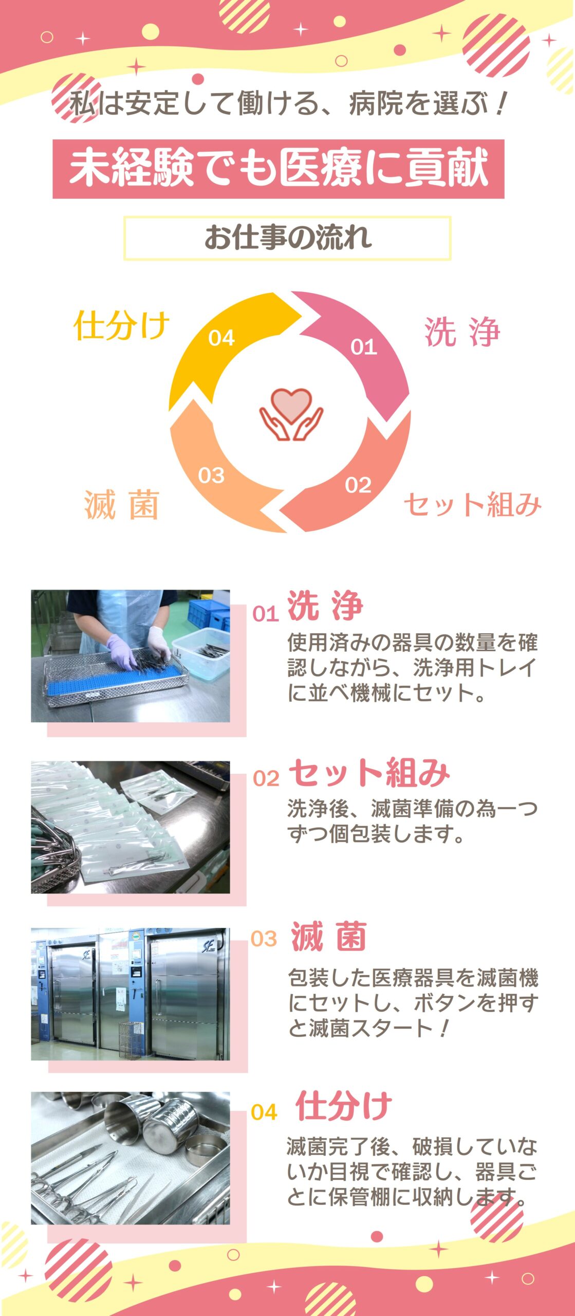 清潔な医療器具を提供することで、確実に患者さんの役に立っていること・医療に貢献できていることを実感することができます。