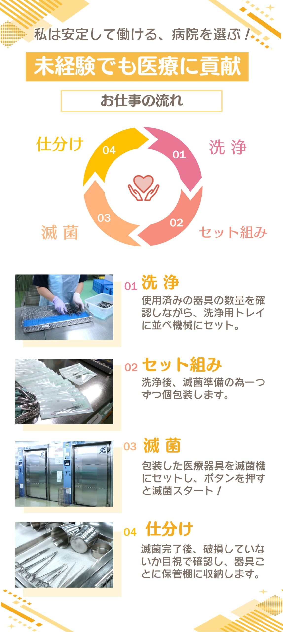 清潔な医療器具を提供することで、確実に患者さんの役に立っていること・医療に貢献できていることを実感することができます。