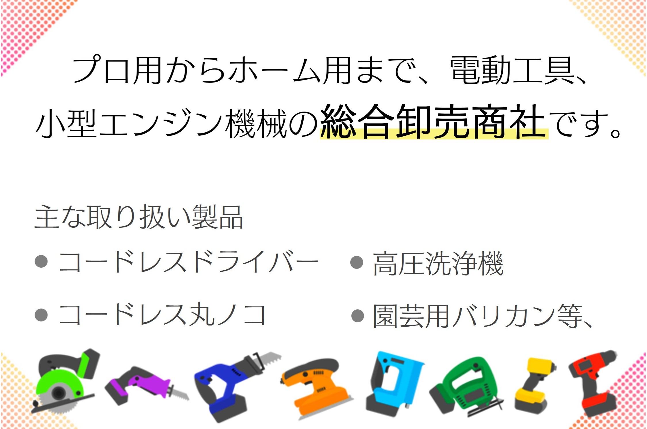 電動工具や配管工具など、建設・設備・DIY分野の製品を幅広く取り扱っています。