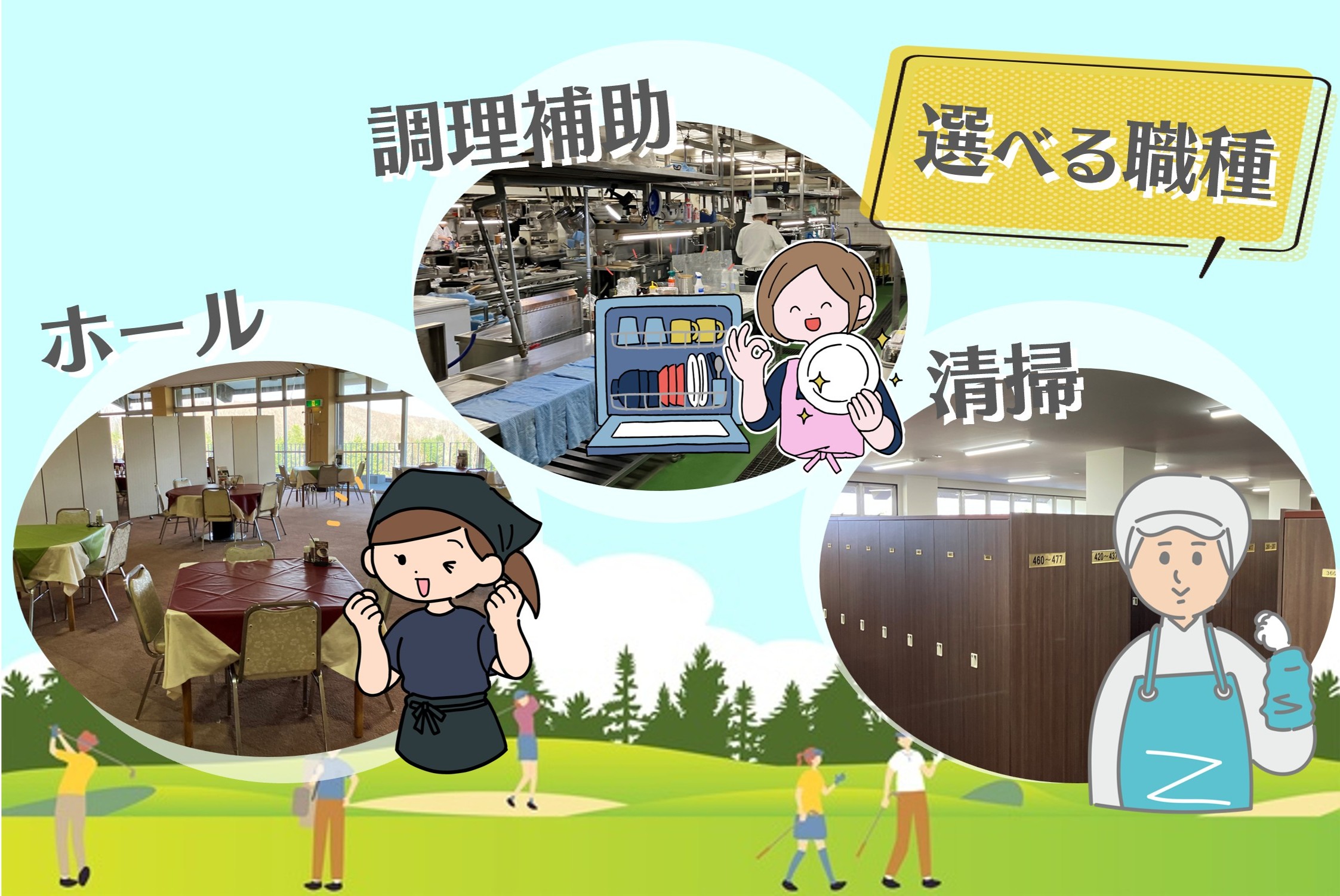 ゴルフ場のお仕事に興味があった方、経験はあるけど今までとは違うゴルフ場で働いてみたいと思っていた方、ぜひご応募ください♪