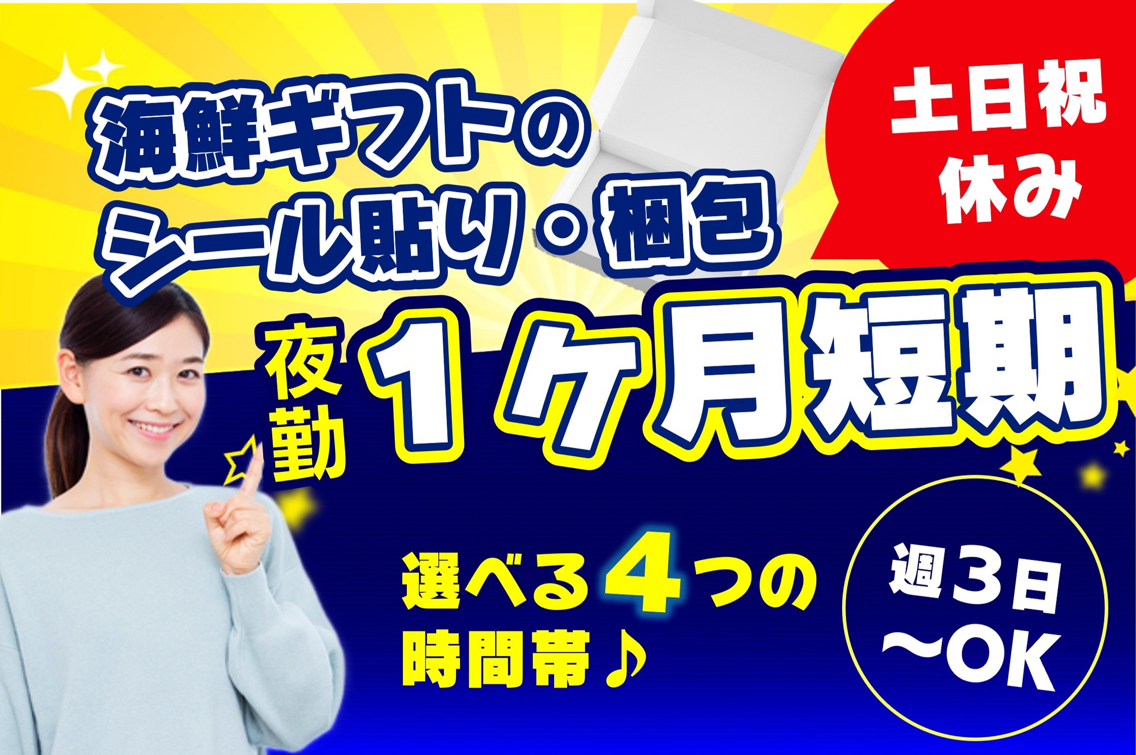 個人宅向けお取り寄せ海鮮ギフトの梱包・ラベル貼りを担当していただきます。