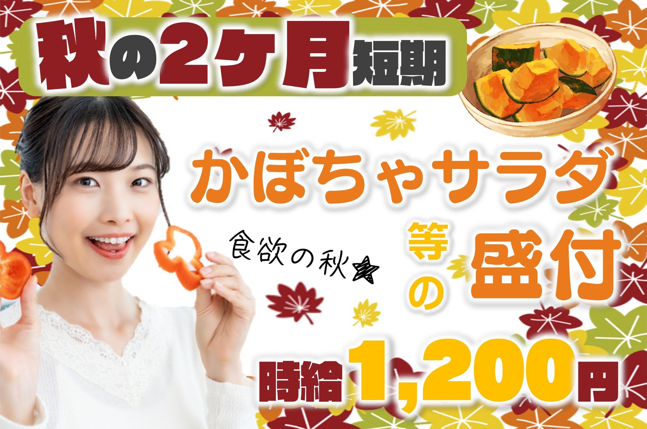 13時退社の2ヶ月短期/秋のかぼちゃサラダ等の盛付