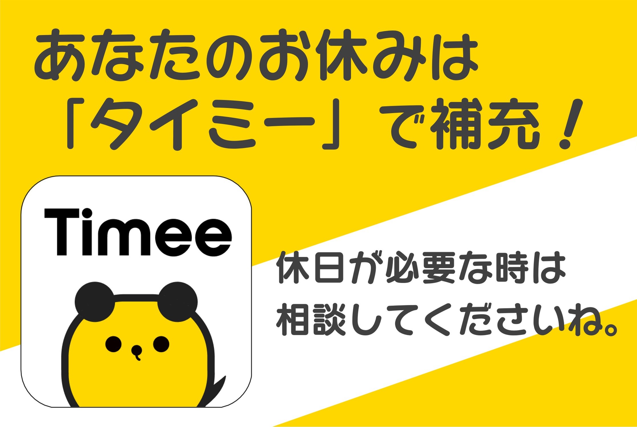 9時出勤→14:00/15:00/16:00/17:00/18:00お好きな時間をお選びください。