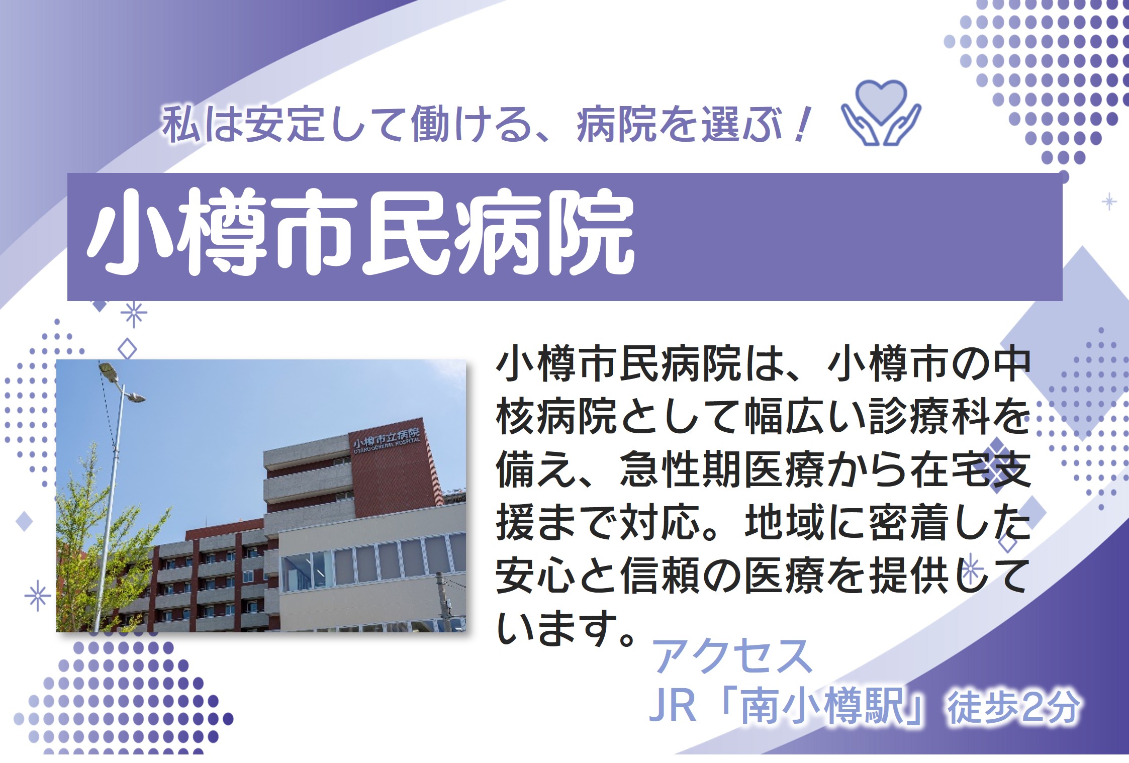 ■小樽市立病院 JR「南小樽駅」から徒歩2分の病院です。 2014年に統合・新築され、最新設備を備えた清潔な施設で、急性期医療を主体に救急・災害対応にも注力しています。 |
