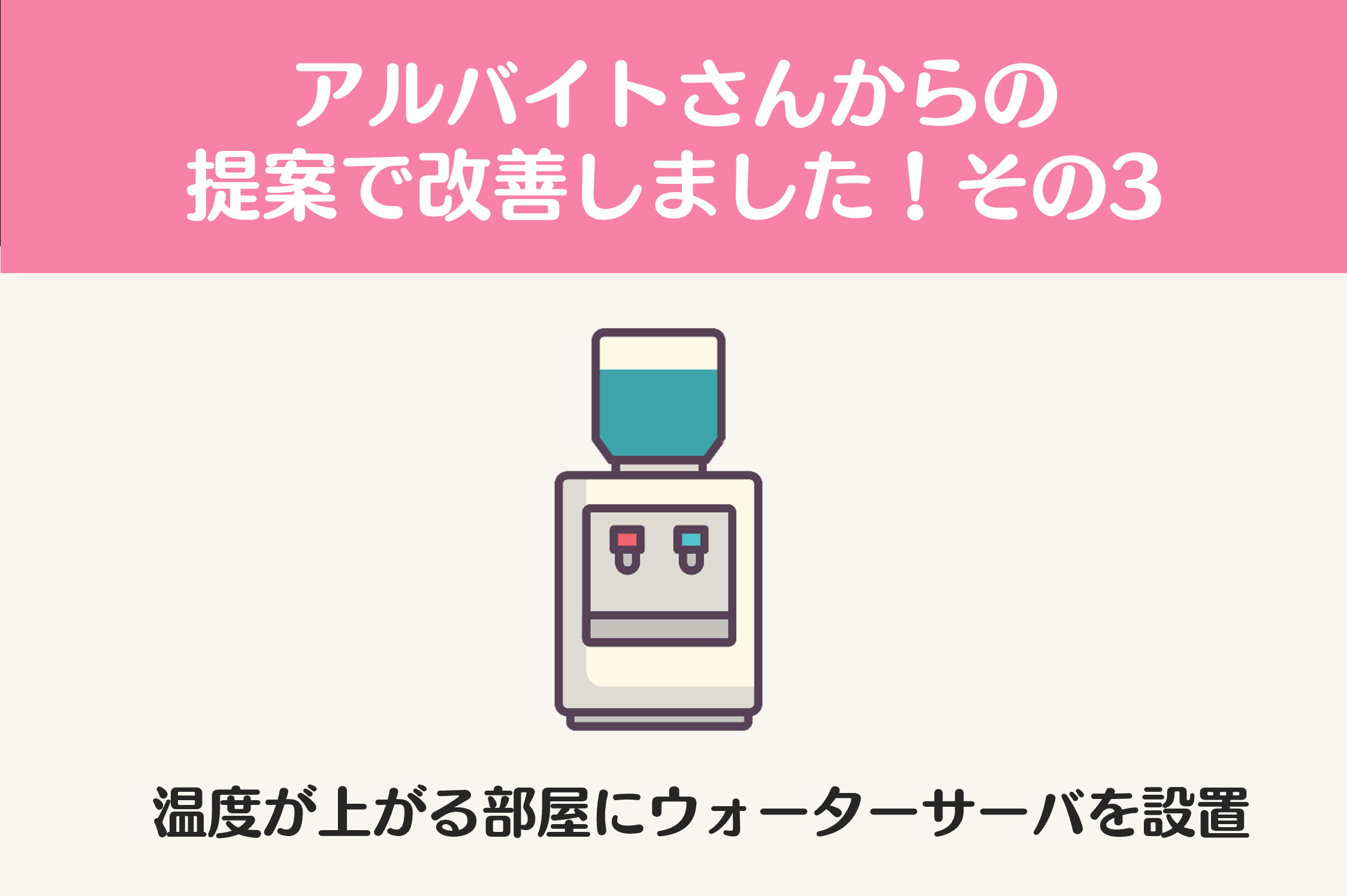 気温が上がる夏場に、ウォーターサーバーを設置することになりました。