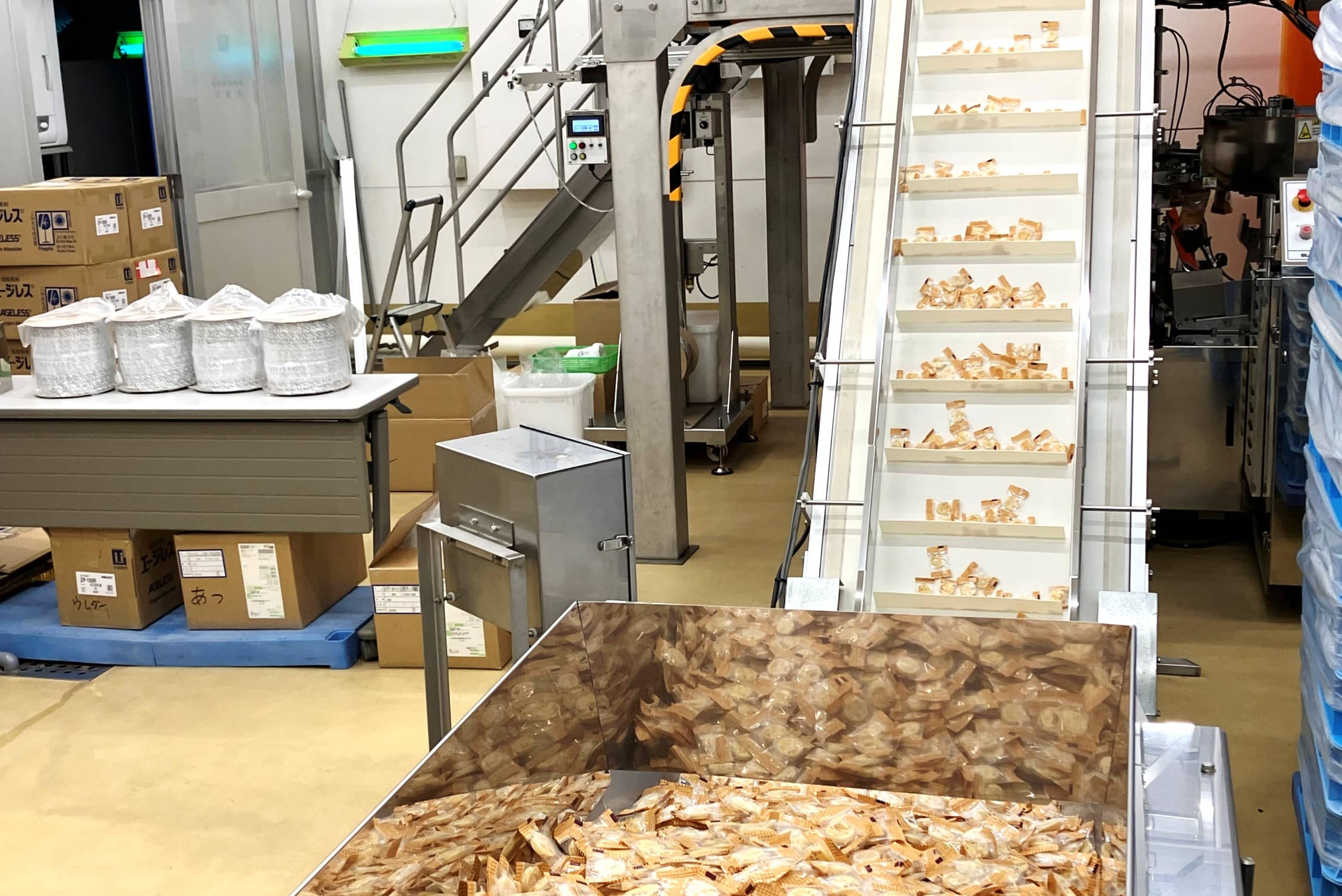 何もなければ、機械がカズチーを個包装するのをずーっと眺めて検品する時間も中にはあります。