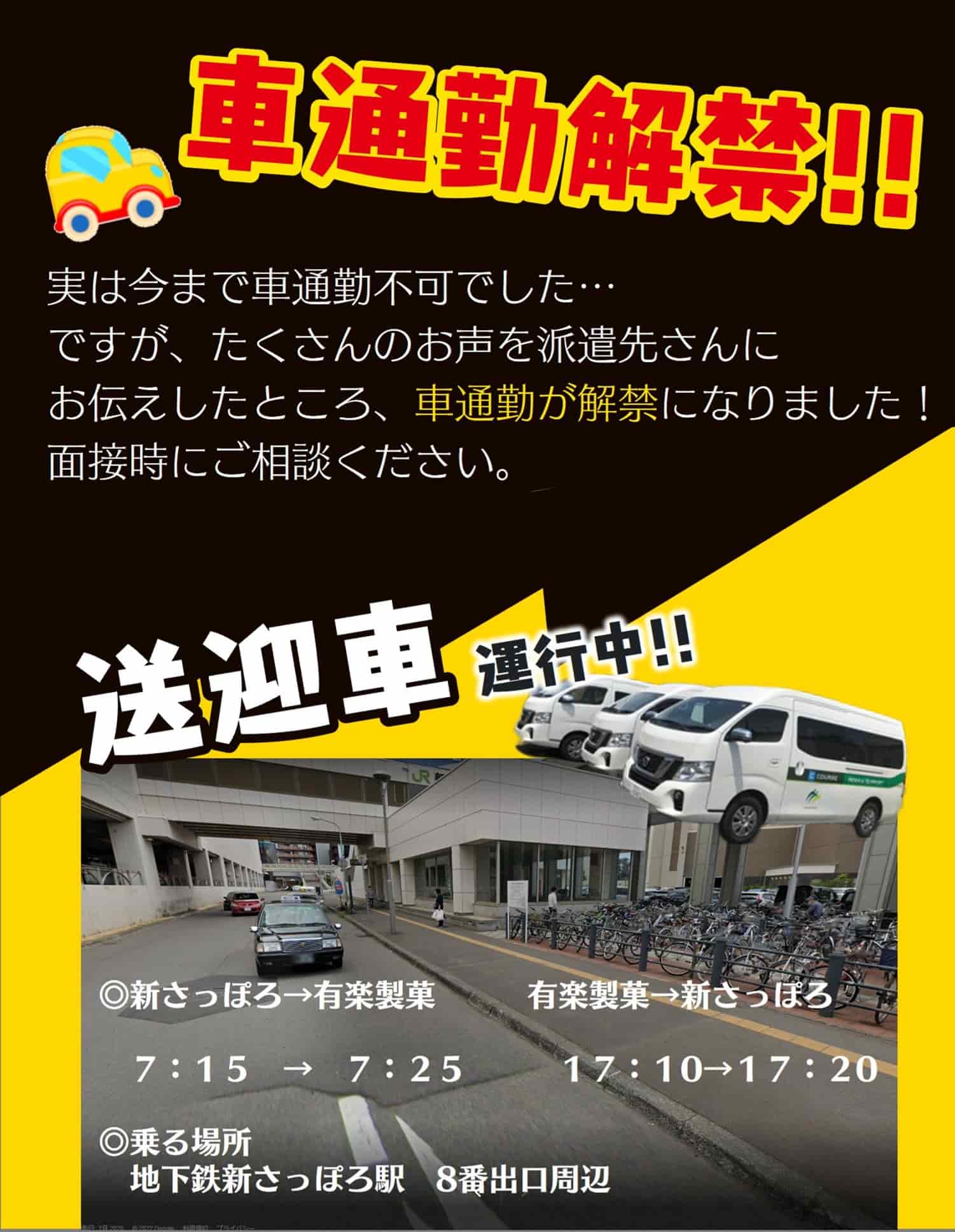 そのお声を派遣先さんに届けたところ、なんと車通勤相談可能に!!!