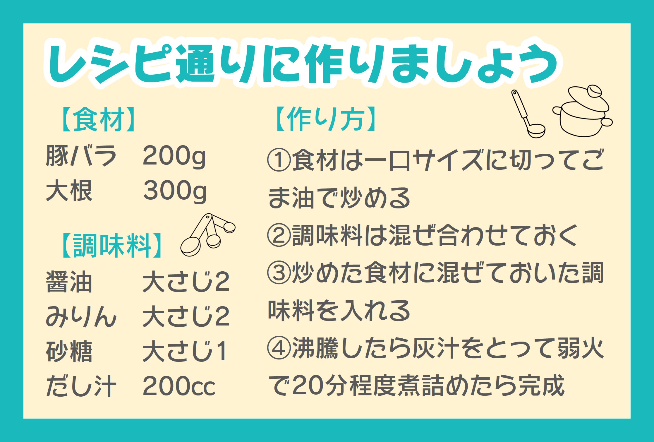 市の献立・レシピ通りに調理します☆