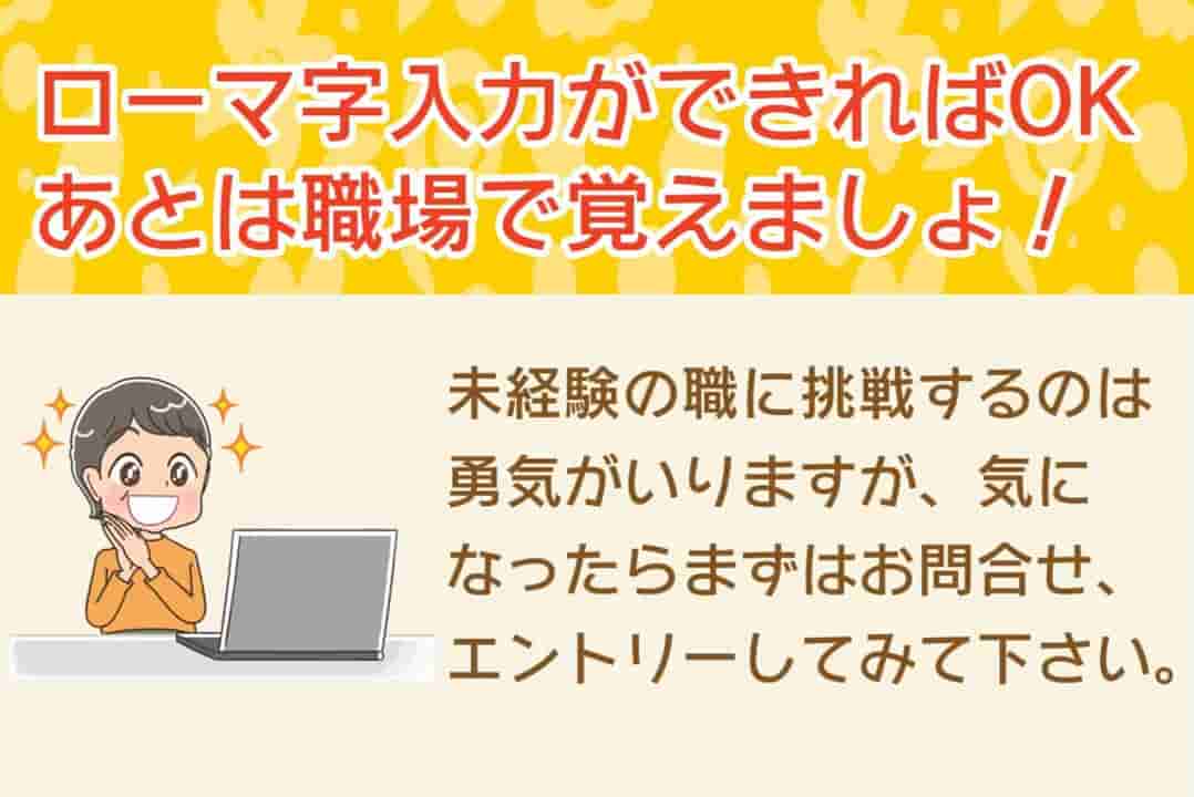■未経験OK ■PCの電源をつける、消すなどの基本操作 ■ローマ字入力ができれば問題ありません |