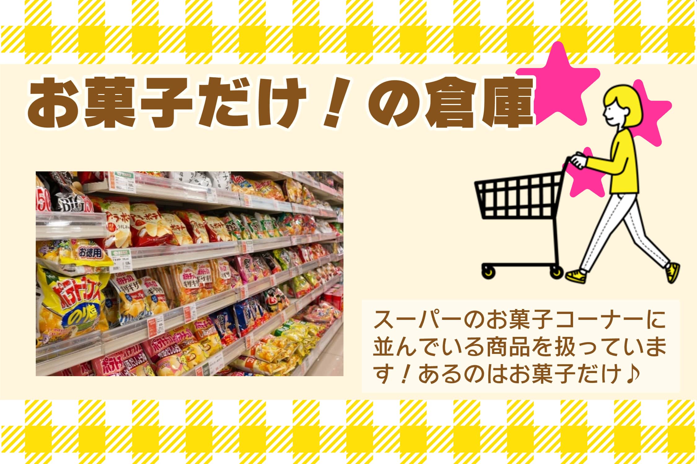 スーパーのお菓子棚に並んでるお菓子を扱っている倉庫です♪