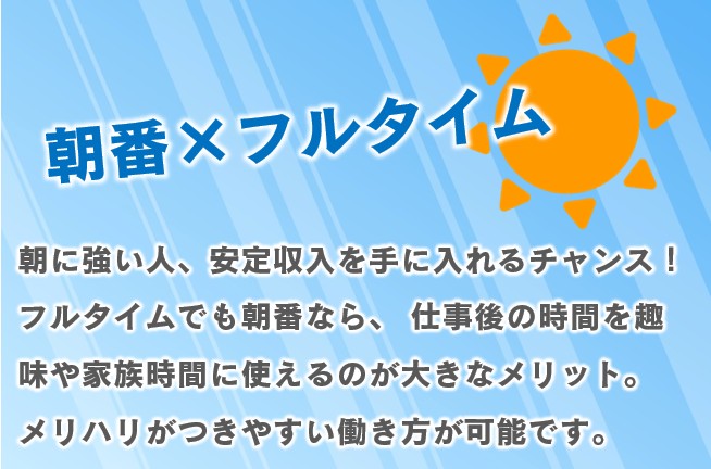 | 時間 | 早番/5:00~14:00 |