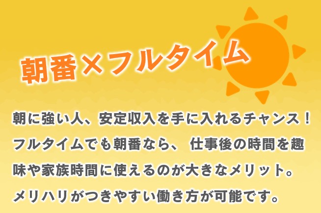 | 時間 | 早番/5:00~14:00 |