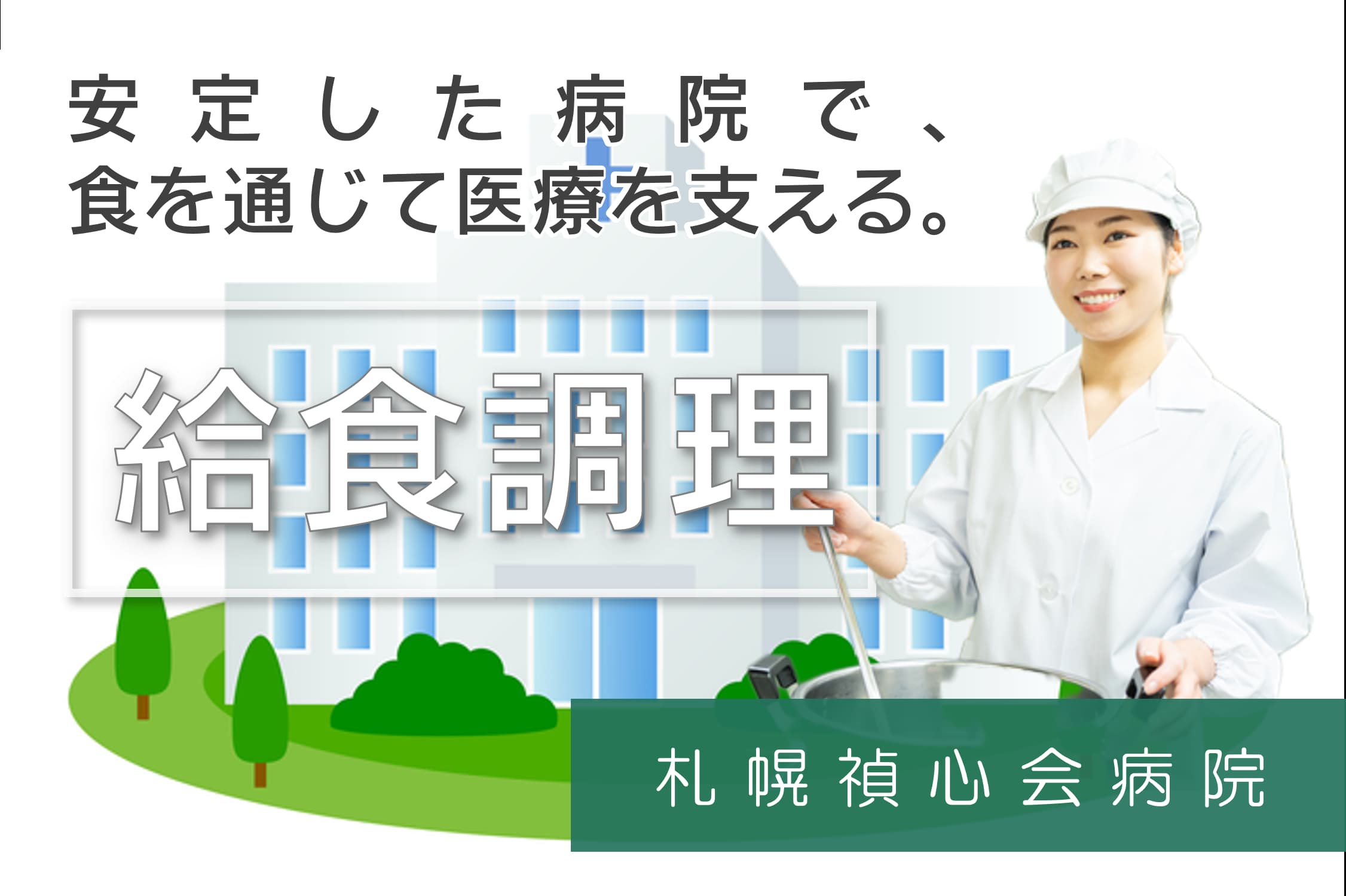 【給食調理スタッフ】安定した病院で、食を通じて医療を支える。