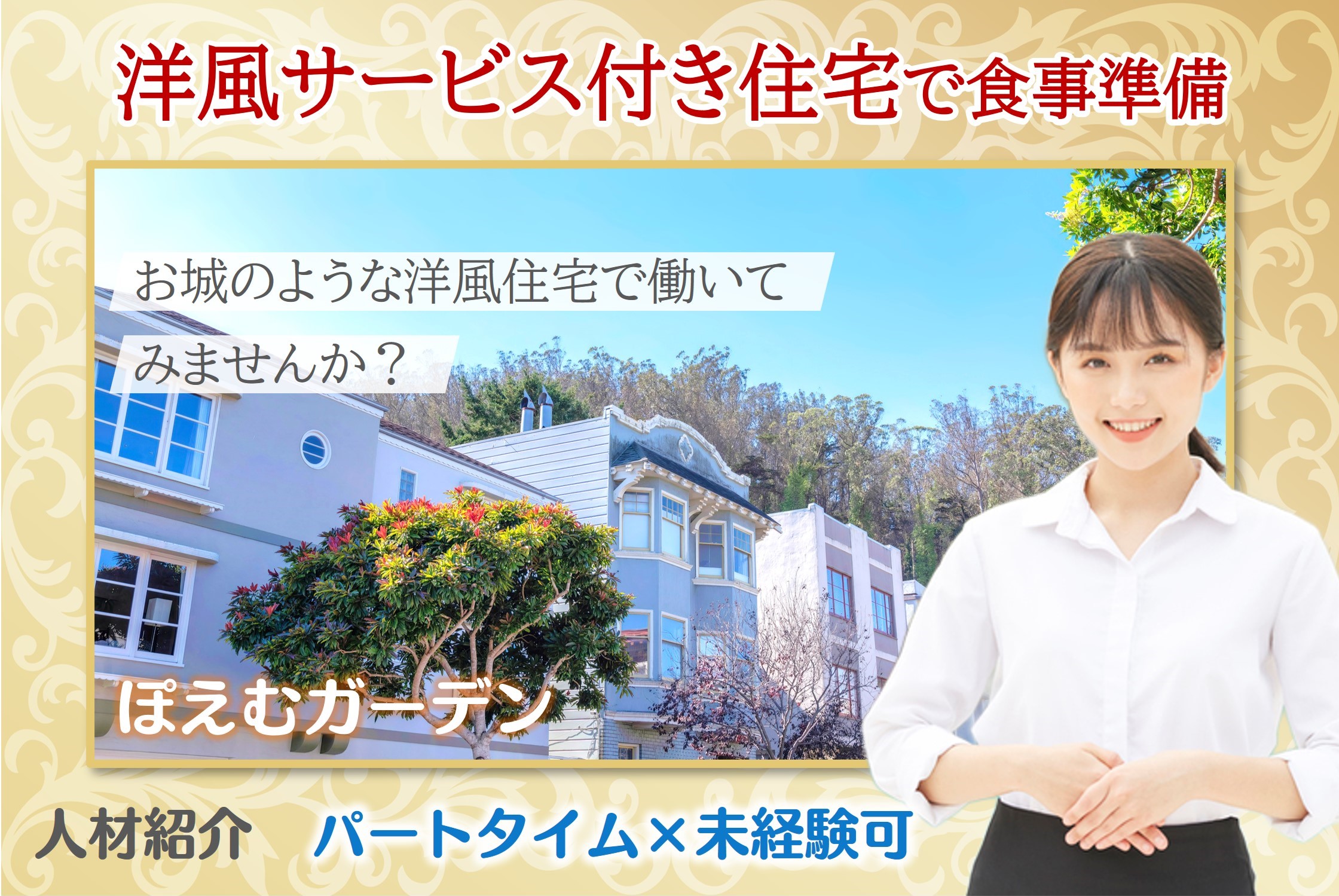 新築のサービス付き住宅で働いてみませんか?外観はまるでお城のよう!未経験&短時間のオシゴト♪
